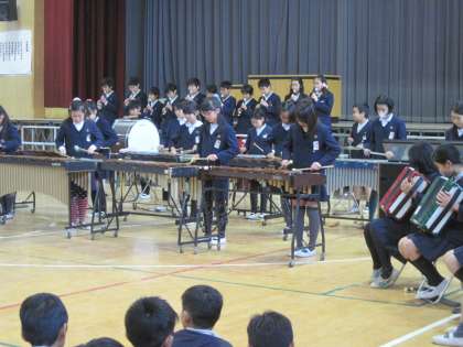 英語が終わって、手拍子をしながら、楽器のあるところへ移動して、まずは2組の合奏です。曲目は2組らしいとっても元気な『テキーラ』でした。続いて、コマーシャルでおなじみの『ジャンバラヤ』を1組がしっとりと合奏しました。