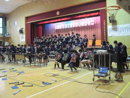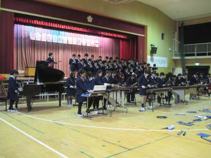 その後、1人1人が家族に対して感謝の言葉を述べ、最後は、学年全体で「チキチキバンバン」の大合奏をしました。