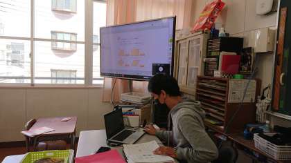 本日より、5年生も算数の授業(習熟度別)をリモートで開始しています。