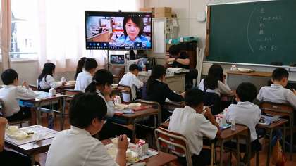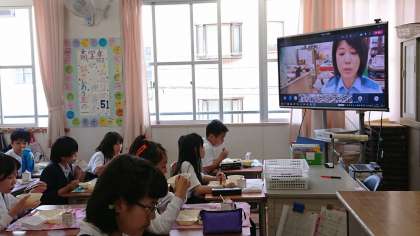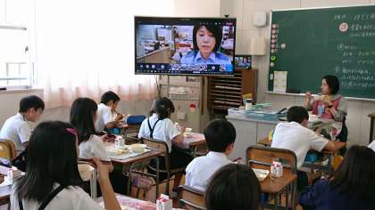 給食を食べながらではありましたが、みんな一生懸命耳を傾けていました。