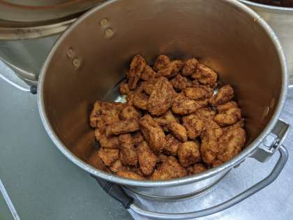 一口トンカツは、給食室で、衣とパン粉をつけてあげる手作りのトンカツです。昨日からトンカツを楽しみにしている児童がたくさんいました。