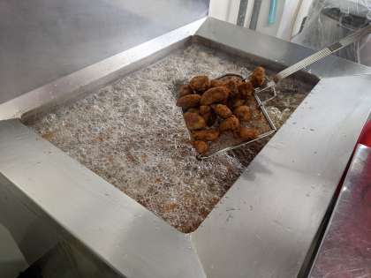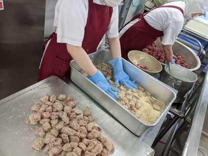 一口トンカツを作っている様子です。