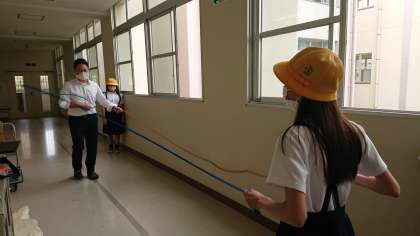 6年生が、教頭先生から、「ダブルダッチ」の縄の回しかたをおしえてもらいました。