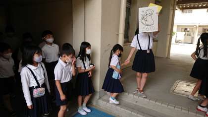 自己紹介をした後、今後の集会活動の時に、体育館で並ぶ位置の確認をしました。