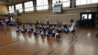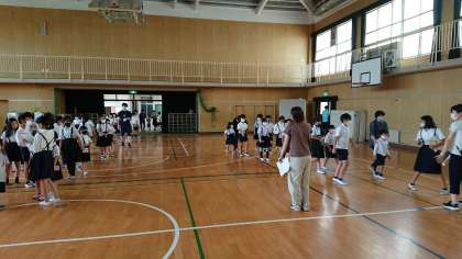 自己紹介をした後、今後の集会活動の時に、体育館で並ぶ位置の確認をしました。