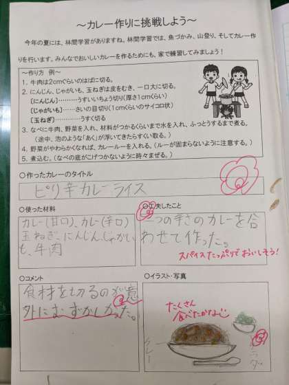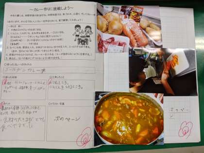 自主学習ノートにカレーを実際に自分で作って、その様子をまとめてきている児童が何人もいました。