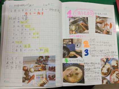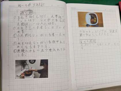 カレー作りの様子を写真付きでわかりやすくまとめていました。