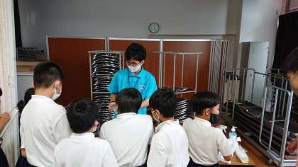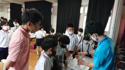 今日は、4年生が、水道記念館の方に来ていただき、体験学習を行いました。