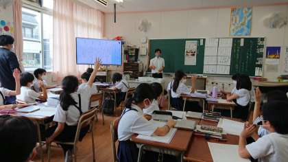 今日は、5年生の「ジャンプ クラス」で授業研究会を実施しました。
