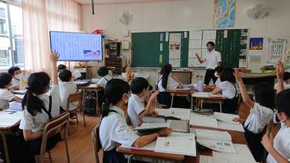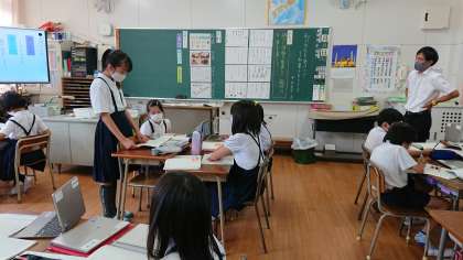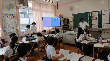 今日は、5年生の「ジャンプ クラス」で授業研究会を実施しました。
