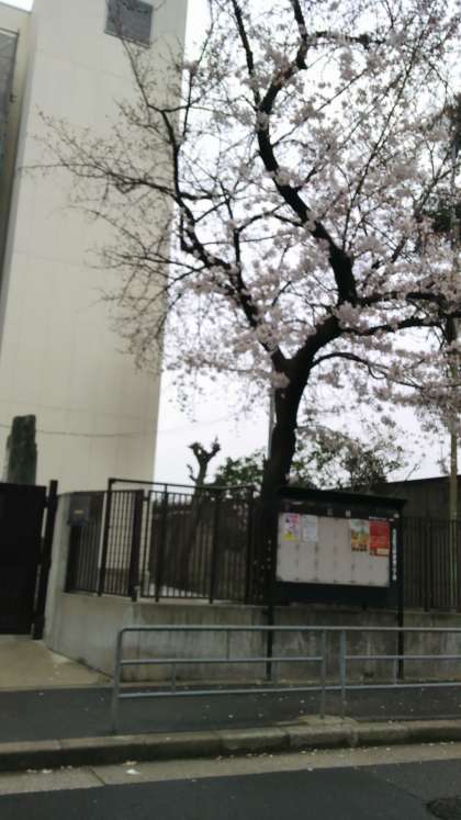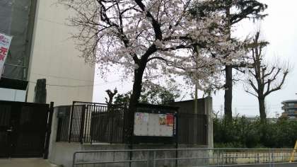 昨年度は正門の桜が満開でした。しかし、その桜は、新校舎建設のため、やむを得ず伐採してしまいました。今年度の桜は、現在の通用門のところしか見えず、少しさみしくなってしまいましたが、それでも元気に咲いています。入学式まで散らずに咲いていてくれるとうれしいです。