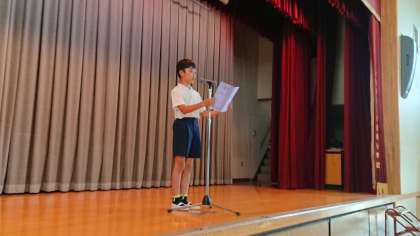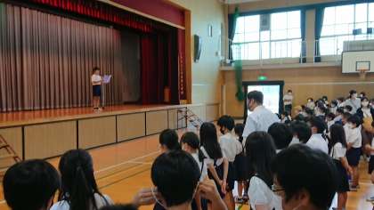 今回は、5、6年生の代表児童が、1学期を振り返り、頑張ったことやこれから努力したいことを発表してくれました。