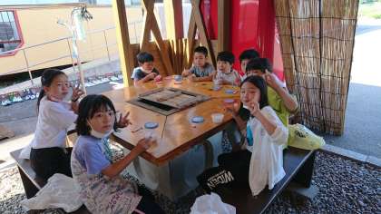 焼き板づくりの後、おやつのかき氷を食べました。