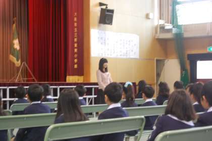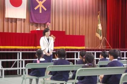 学校長より「しっかり勉強しよう」「友達となかよく遊ぼう」「元気にあいさつをしよう」というお話がありました。「ともだちはいいもんだ」の歌のプレゼントもありました。