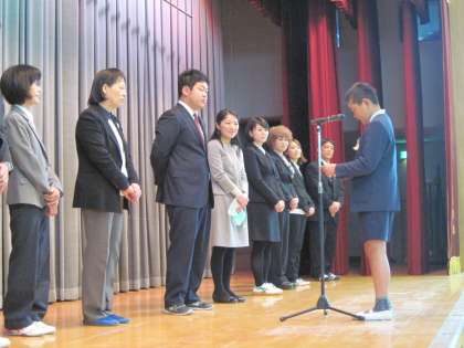 最後に児童を代表して、6年生が「ようこそ三軒家東小学校へ!」と、「歓迎の言葉」をしっかり述べてくれました。