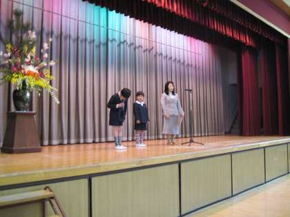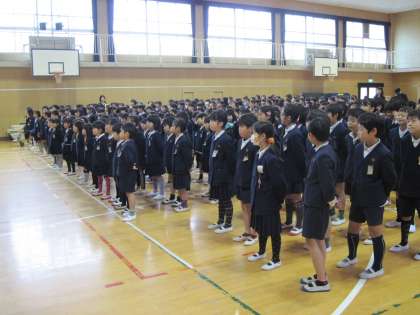 まず最初に、転入生の紹介がありました。3年生と5年生に新しいお友達が入ってきました。しっかり自己紹介ができました。児童のみなさんも、しっかりお話を聞くことができました。その後、新しく来られた先生方の着任式を行いました。