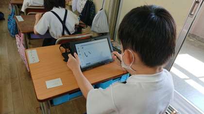 昨日、1〜6時間目にかけて、1学年ずつ、デジタルドリルの活用方法について指導しました。