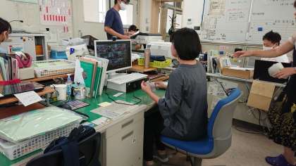 今日は、環境委員会から、中庭に植えてある花の紹介と、「テープの巻芯を集めて緑の地球を守ろう」の途中経過のお知らせがありました。