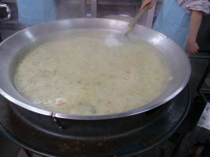 豆乳コーンスープも大なべで作ります。