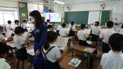 今日は、3年生で国語の研究授業をしました。