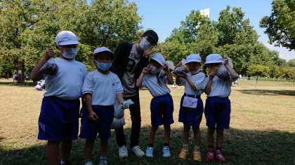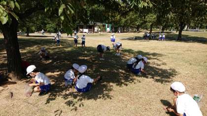 お弁当タイムが終わり、どんぐり拾いをしたりおにごっこをしたりして遊んでいます。