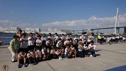 海の近くで記念撮影をしました。