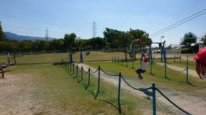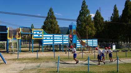 お弁当、おやつタイムが終わり、遊具で遊んでいます。