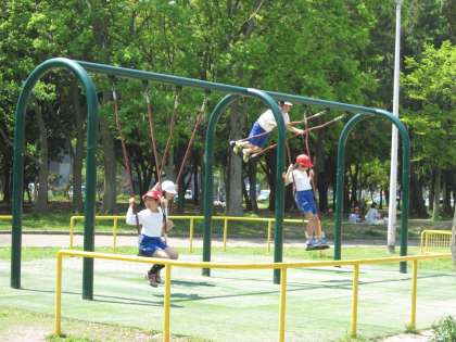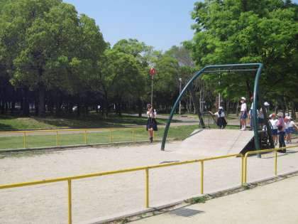 いろいろな滑り台やブランコなど、たくさんの遊具がありました。