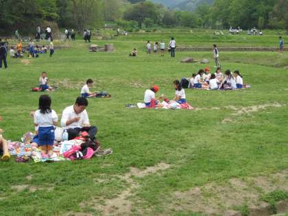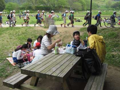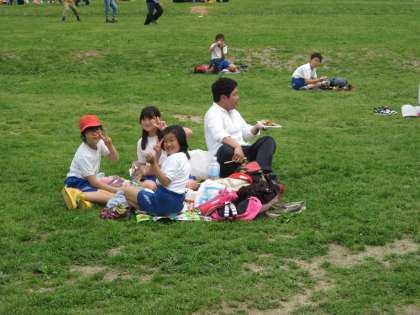 お弁当とおやつを食べた後、緑の中を走り回って遊びました。