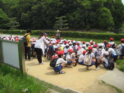 4月28日(火)は5・6年生の遠足で飛鳥方面へ行きました。往路は、5,6年生の縦割りで班編成をして、楽しくオリエンテーリングをしました。出発の様子です。
