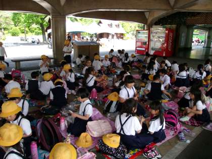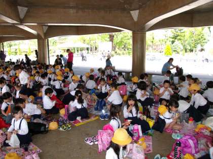 みんなでお弁当を食べました。お互いお弁当を見せ合って楽しく食べていました。