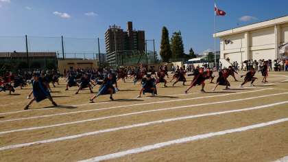 1・2年生による団体演技「ばんばん!ばばーん!」です。