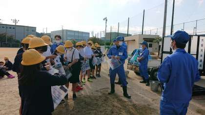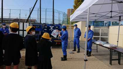 6年生は、水道局の方々のご指導で、給水訓練をしました。