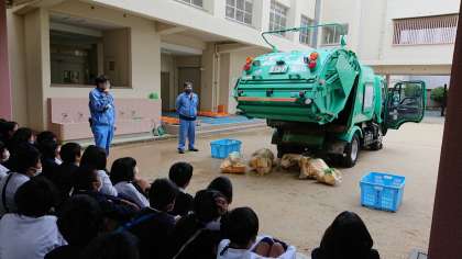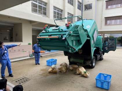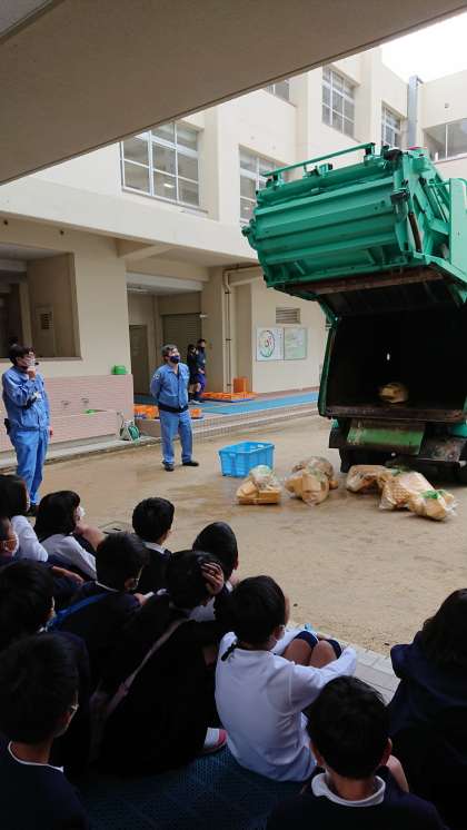 環境事業局の方々に来ていただき、出前授業をしていただきました。