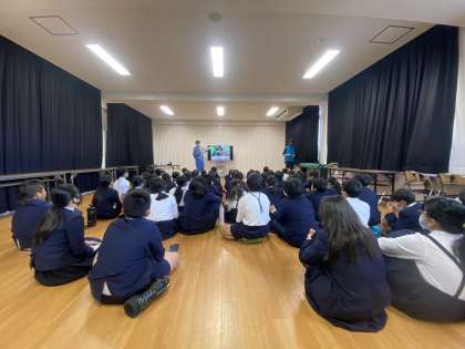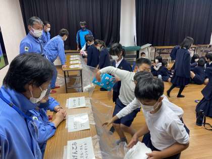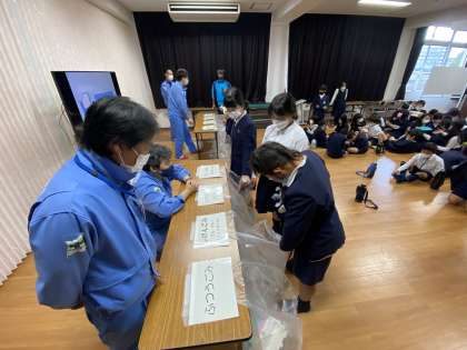 パッカー車を見せていただいた後、ごみの分別について、ワークショップをしながら教えていただきました。