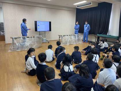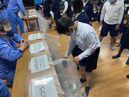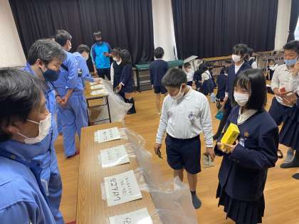 パッカー車を見せていただいた後、ごみの分別について、ワークショップをしながら教えていただきました。