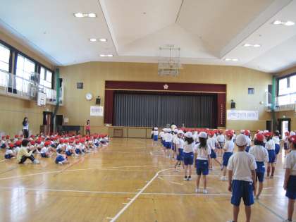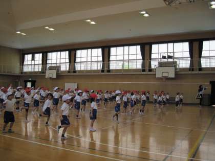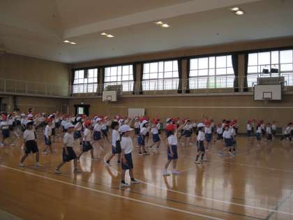 先週から、6月7日の運動会に向けて、各学年の練習が始まりました。1年生は、2年生の演技をお手本にして、楽しく団体演技の練習に取り組んでいます。