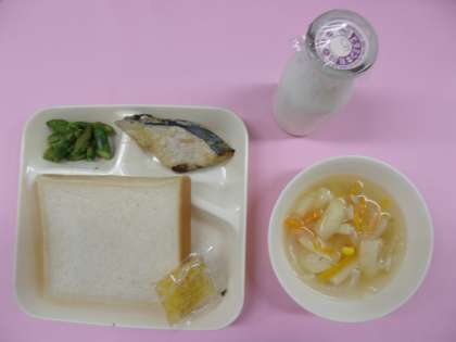 今日の献立は「かつおのガーリックマヨネーズ焼き・スープ・グリーンアスパラガスのソテー」でした。