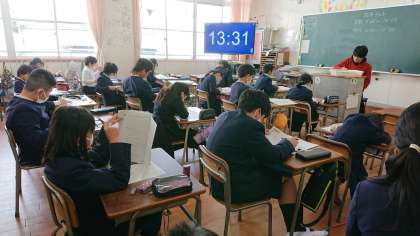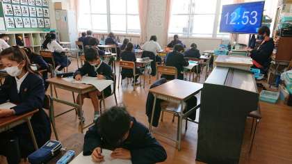 今日は、3〜6年生の経年調査2日目です。2時間は算数、3時間目は理科、4時間目は5・6年生が英語に取り組みます。
