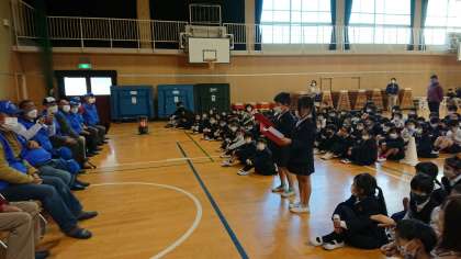 クイズやじゃんけんゲームをした後、児童の代表がありがとうの気持ちを込めて、あいさつをしました。