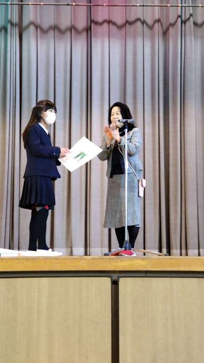 「手を洗おう、きれいな手!」ポスターコンクール2021に多くの児童が応募したので、学校奨励賞として、化粧石鹸とクリアファイルをいただきました。また、「みどりの絵コンクール」にも多数応募したということで、学校に図書カードをいただきました。入賞した児童には、賞状と副賞をいただきました。