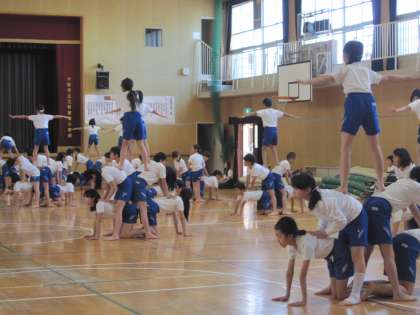 5・6年生は組み体操に取り組んでいます。みんな真剣に集中して練習しています。選曲も素敵で、子どもたちの頑張っている姿に胸が熱くなりました(^_^;)