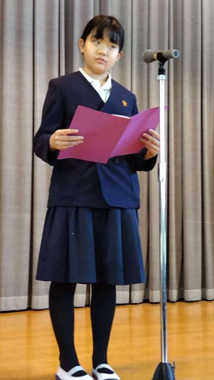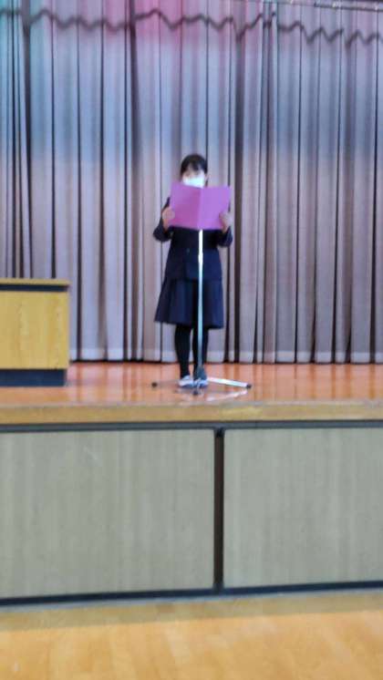 代表の児童が、2学期に頑張ったことと3学期の目標を発表しました。