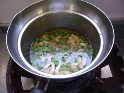 きょうは「えんどうの卵とじ」にさやから豆を取り出して調理しています。