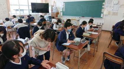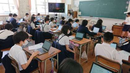 6年生が取り組みました。今年度から、1人1台端末を使い、入力します。