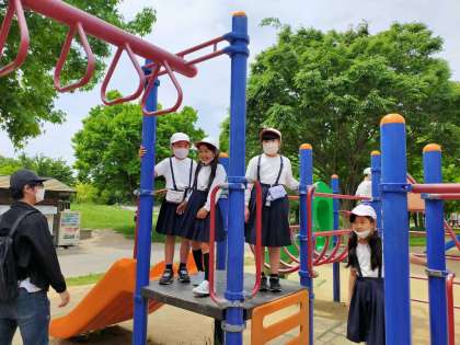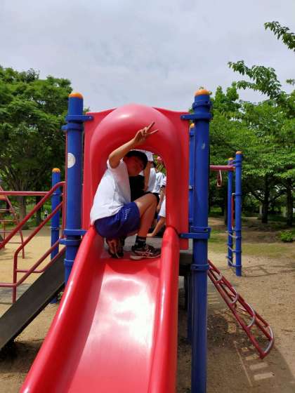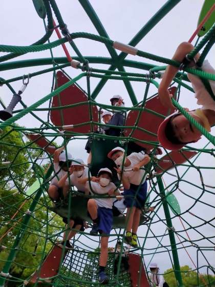 お弁当とおやつの後、遊具で楽しく遊んでいます。