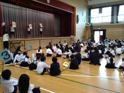 久しぶりの全校での集会で、大いに盛り上がりました。