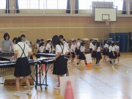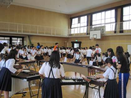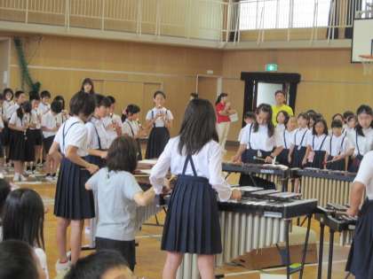 楽しく歌ったり演奏したりした後、音楽クラブの演奏する「さんぽ」の曲に合わせて教室へ向かいました。