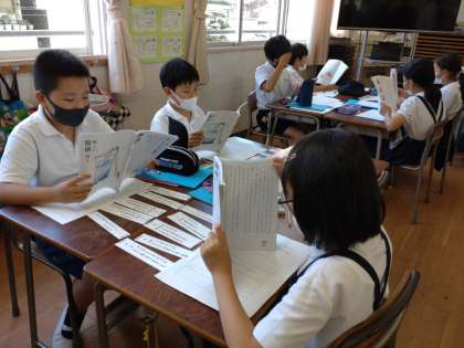 今日は、国語「筆者が考えたまとまりの順序について考えよう」という学習です。
