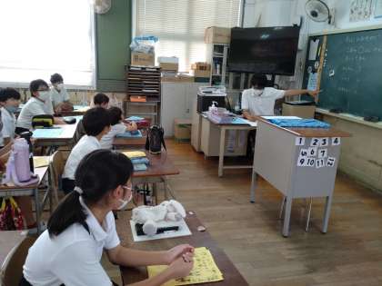 5時間目に、縦割り班で、今週の土曜授業で行うお店めぐりの準備をしました。